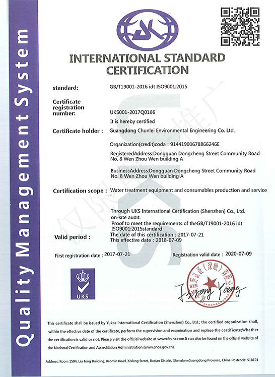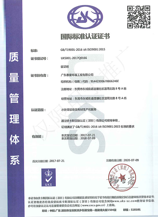 環境管理體係認證證書-英文