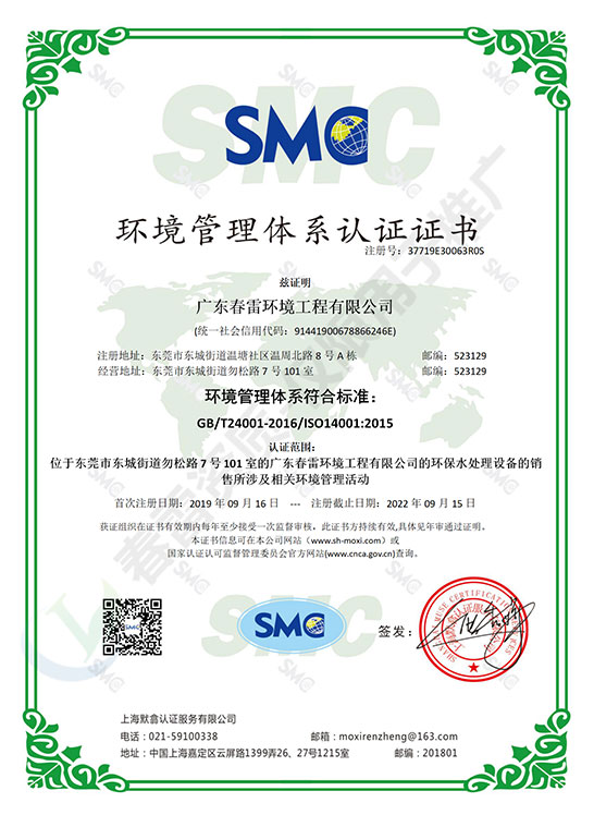 環境管理體係認證證書-中文