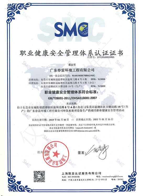 職業健康香蕉乱伦视频安全管理體係認證證書